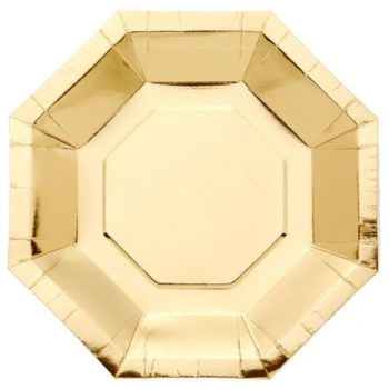 • Tableware | Foil Gold Metallic Octagon Paper Plates – 8Pk